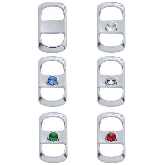 United Pacific - Freightliner Rocker Switch Cover With 2 Openings - Made Of Chrome Plated Plastic - Available Plain, Indented Or With Diamond - Diamond Options Available With Blue, Clear, Green Or Red Diamond - Sold...Regular price From $7.09 -