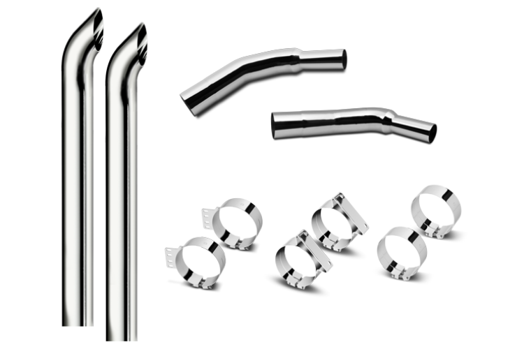 Roadworks - 7 Inch Hoosier Cut Exhaust Kit For Kenworth W900L With 40 Inch Boxes And Single Muffler - FREE SHIPPING TO ALL ADDRESSES IN LOWER 48 STATES - For models with original K180-18615 elbow - Chrome Plated Steel Exhaust Kit - Choose Between Aero Cab And Non-Aero Cab - Kit Includes The Following Components; (2) 7 Inch Diameter Hoosier Cut Top Stacks - Choose Either 96, 108 Or 114 Inch Length - (2) Elbows Reduced To 5 Inch Diameter Desigend For Trucks With 40 Inch Boxes And Single Mufflers - (2) Upper Aero Cab Clamps Or Non-Aero Cab Clamps (Depending On What Style You Choose In Dropdown) - (2) Clamps Without Brackets - (2) Frame Mount Clamps - Slash Cut (Miter) And Stove Top (Flat Top) Available In Other Kits - Free Shipping To All Lower 48 States - Residential And Commercial Addresses Apply For Free Shipping - Fits Most Kenworth W900L Aero Cab Models With 40 Inch Boxes And Single Muffler - 3 Year Warranty