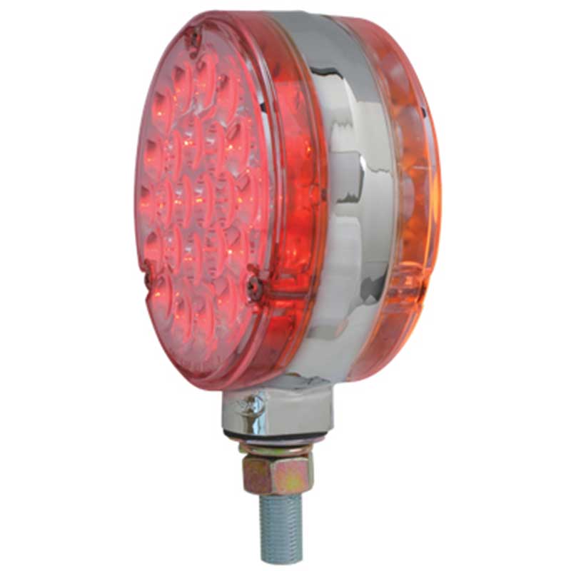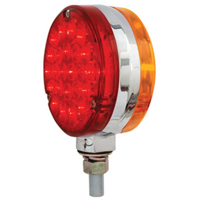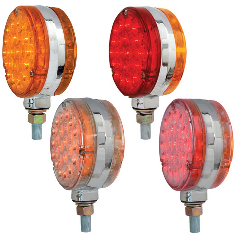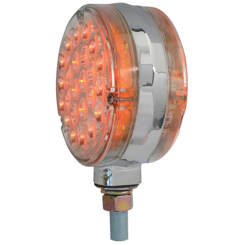Grand General - 4 Inch Double Faced Pearl LED Lights - 24 LEDs Per Side - 12V - Light Size: 4-1/4 Inch Diameter by 2-1/2 Inch Deep - Stud Size: 1/2 Inches by 20 Inches by 1-11/16 Inches - Polycarbonate Lens and Chrome Die Cast Housing - Available in Amber / Amber - Red / Red, Amber / Clear - Red / Clear or Amber / Clear - Amber / Clear - Sold Each - 3 Wires - Fits Most Makes and Models