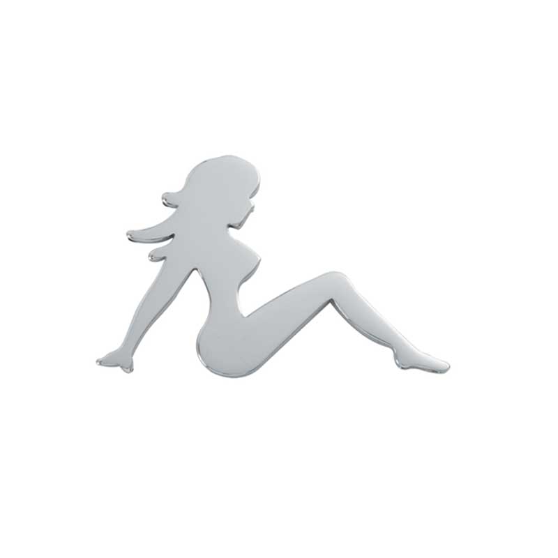 Grand General - Sitting Lady Mud Flap Cut Out - Chrome Plated Steel - Available in Large, Medium, Small, Mini, or Super Mini - Available Facing Left or Facing Right - Available With Studs or With Adhesive Tape - Sitting Lady Mud Flap Cut Out - Chrome Plated Steel - Available in Large, Medium, Small, Mini, or Super Mini - Available Facing Left or Facing Right - Available With Studs or With Adhesive Tape - Large = 17" Wide x 11" Tall - Medium = 9" Wide x 6 1/2" Tall - Small = 6" Wide x 4" Tall - Mini = 4 1/2" Wide x 3" Tall - Super Mini = 3 5/8" Wide x 2 1/2" Tall - Sold Each - Fits Most Makes and Models