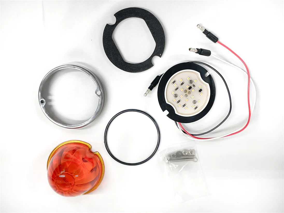 Grand General - Comes in Dark Amber Lens/Amber LED's, Amber LED's/Clear Lens, Red Lens/Red LED's, Clear Lens/Red LED's, White LED's/Clear Lens, Blue Lens/Blue LED's & Green Lens & Green LED's. New combination watermelon light inspired by an "Old School" glass lens appearance and combined with modern LED brightness. A truly unique unit that delivers style, brightness and safety, while backed by Grand General's quality reputation that drivers have relied on . The flush mount base allows the unit to be easily mounted on any flat surface, and the stainless steel bezel wraps around to secure the glass lens. Internally, it's powered by 18 high power, water-sealed, SMD's custom made for 3.5" lenses, and wired for stop, tail, and turn signals. Finally, an all in one unit that pays homage to tradition while embracing today's technology.