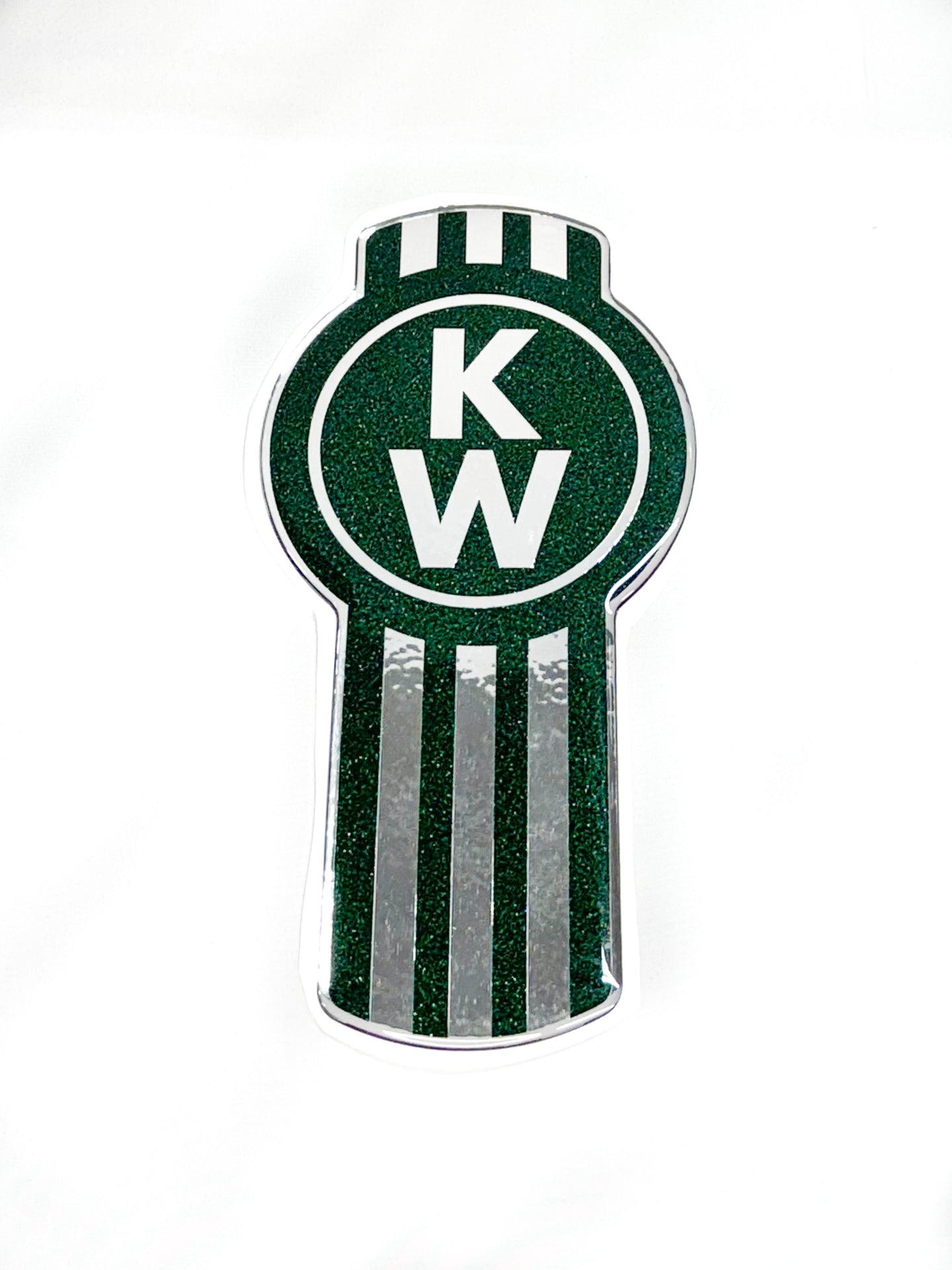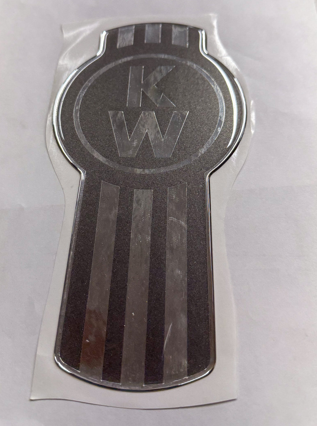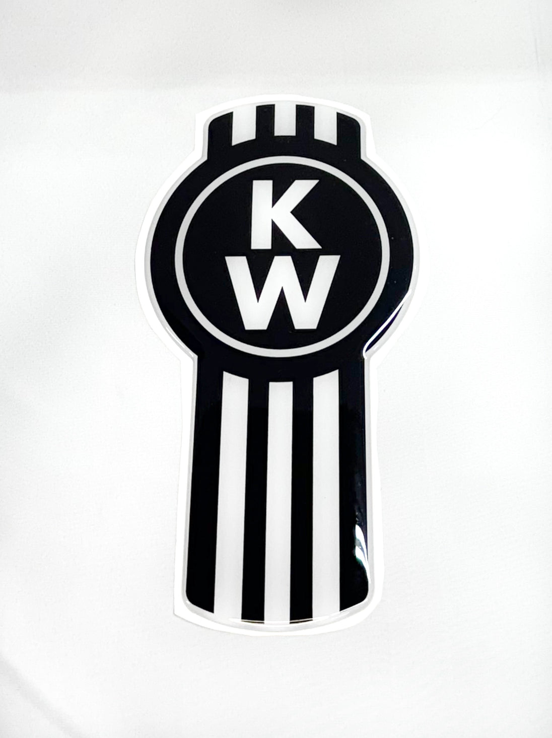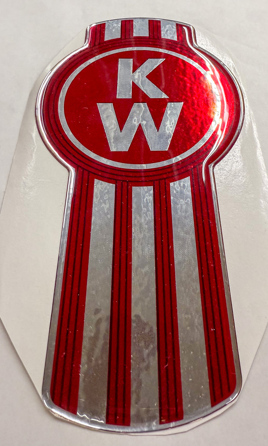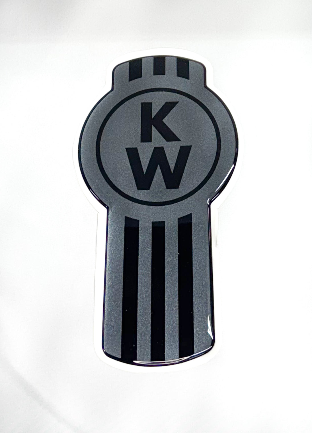 Kenworth Gel Stick On Logo Covers by GR. Available in Large (for the hood) and small (inside for glove box)