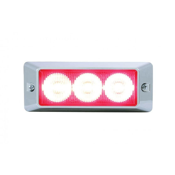 United Pacific - Warning Light Head With 3 High Powered LEDs - Warning Lighthead With Deluxe Chrome Bezel And 3 High Powered LED Lights - Available In Amber Or Red - 12 Or 24 Volt Application - Surface Mounted With Mounting Holes 4 1/8 Inches Apart - Features 12 Flash Patterns And Multiple Light Synchronization - Sold Each - Fits Most Makes And Models