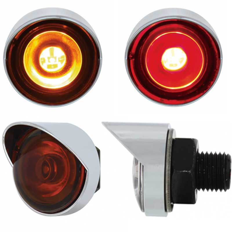 United Pacific - Dual Function 3 High Power LED 1 Inch Auxiliary / Utility Lights with Stainless Steel Bezel with Visor in 4 Options - Available in Amber or Red LED with Amber, Red or Clear Lens - 3 Wire Hardwired - 1 Inch Length x 3/4 Inch x 1/2 Inch Height - Sold Each - Dual Function - Fits Makes and Models
