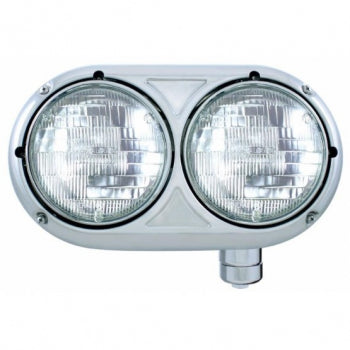 United Pacific - Peterbilt 359 Style Stainless Dual Headlights 5 -3/4 Housings with H4 Halogen Bulb - Sold Each (Driver & Passenger Sold Separately) - Sealed Beam with High/Low Function