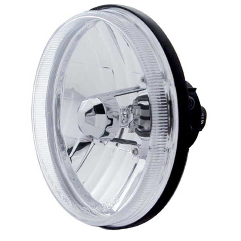 United Pacific - 5 3/4 Round Crystal Head Light with Reinforced Multi-Surfaced and Aluminum Reflector. Rugged Anti-Vibration Construction with Sylvania Halogen Bulb: SAE-9007 12V 65/55W which Replaces H5001/H5006. SAE & ECE Approved. 9007 Bulb Adaptor Plug Included - Sylvania Halogen Bulb: SAE-9007 12V 65/55W - 9007 Bulb Adaptor Plug Included - Rugged Anti-Vibration Construction - Fits Most 5 3/4 Inch Housing - 6 Month Warranty
