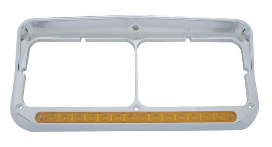 United Pacific - 14 LED 12 Inch Light Bar Chrome Plastic Rectanglar Dual Headlight Bezel With Visor - Available in Amber, Clear or Chrome Lens - Available in Amber or White LED - 14 LED 12 Inch Clearance...Regular price From $38.99 -