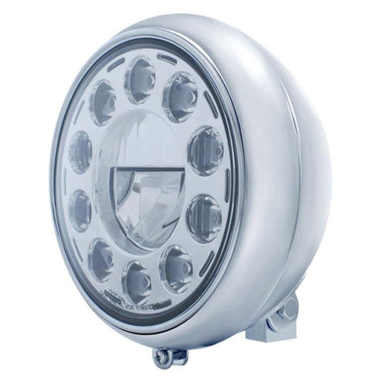 United Pacific - 7 Inch Motorcycle Headlights With Clear Lenses - Made Of Chrome Steel - Available Bulb Options Include: 11 LED High Powered, Crystal H4 Halogen, 34 LED Amber, 34 LED White, 10 LED Auxiliary Or Just...Regular price From $79.99 -