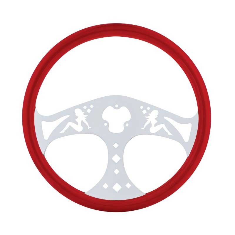 United Pacific - 18 Inch "Lady" Steering Wheel with 4 Chrome Spokes - Available in Blue and Red - Steering Wheel ONLY - Hub Adaptor and Horn Assembly Available Separately - Mix and Match With United Pacific Hub and Designer Horn Bezel For A Unique and Distinctive Look - Sold Each - Fits Most Makes and Models