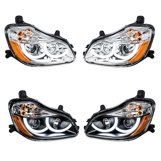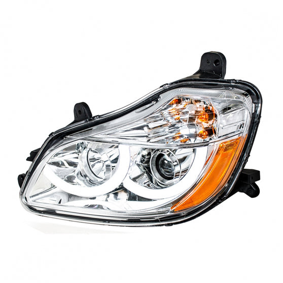 United Pacific - Kenworth T680 2013 Through 2018 Projection Headlight With LED Position Light - Available In Chrome Or Black - Available For Driver Or Passenger Side - Low Beam Application: H7 Quartz Halogen Bulb, 12 Volt DC Input, 4.58 Amps / 55 Watts - High Beam Application: H1 Quartz Halogen Bulb, 12 Volt DC Input, 4.58 Amps / 55 Watts - Plugs Into Existing Wiring Harness for Easy Connection - DOT/SAE Headlight Approved - Patent Number , US D830, 599 - Sold Each - Fits Most Kenworth T680 Series Trucks From 2013 Through 2018