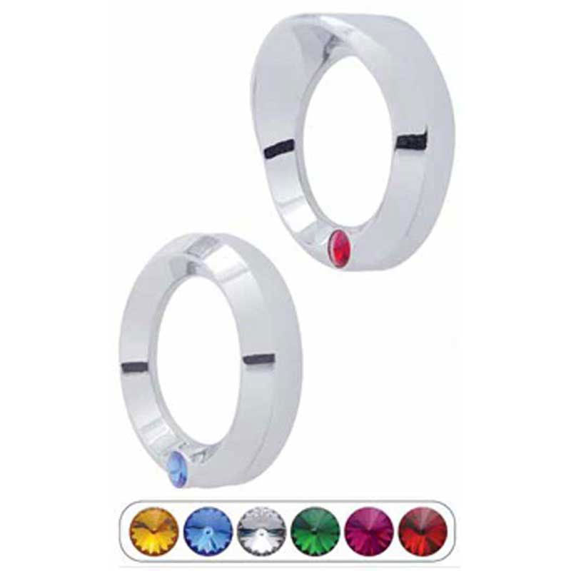 United Pacific - Signature Chrome Small Gauge Cover - Available With Visor - Available With Amber, Blue, Clear, Green, Purple Or Red Diamond - 1 5/8 Inch Inside Diameter - 2 3/8 Inch Outside Diameter - Sold Each - Fits Most Peterbilt, Kenworth And Freightliner Models