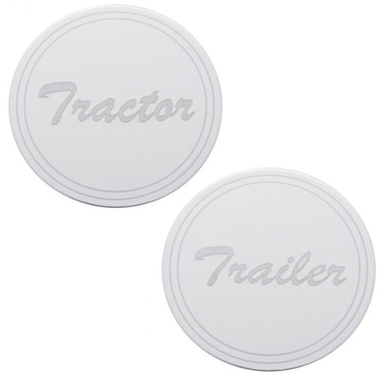 United Pacific - Stainless Air Valve Knob Plaque With Cursive Script - Made Of Stainless Steel - Available With Tractor Or Trailer Script - Knob Plaque Only - Sold Each - Fits Most Makes And ModelsRegular price $6.99 -