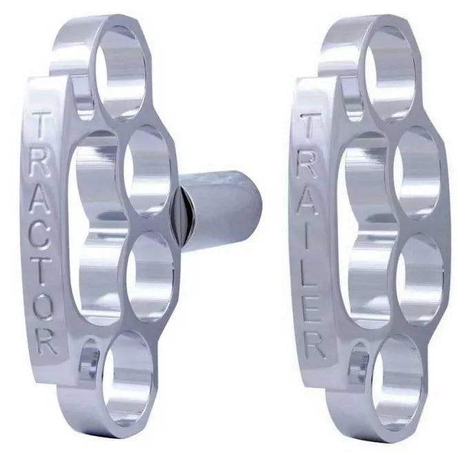 United Pacific - Chrome Aluminum Brass Knuckle Air Valve Knob - Available in Tractor or Trailer Unique Scripted Design Features - Sold Each - Fits Most Makes and Models