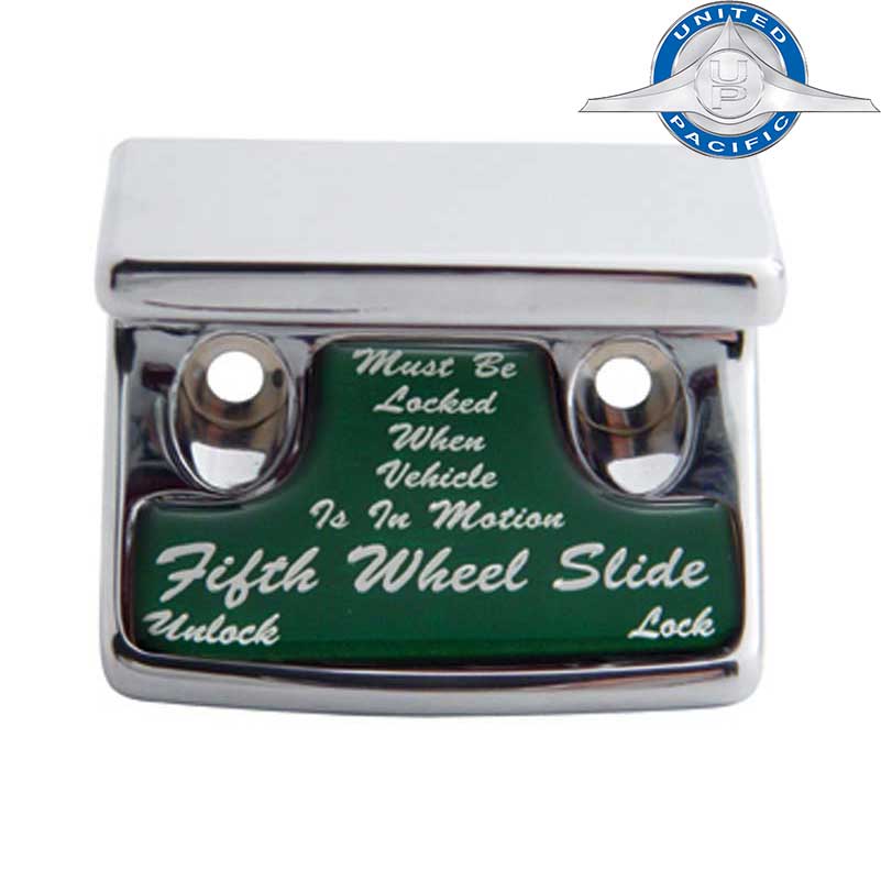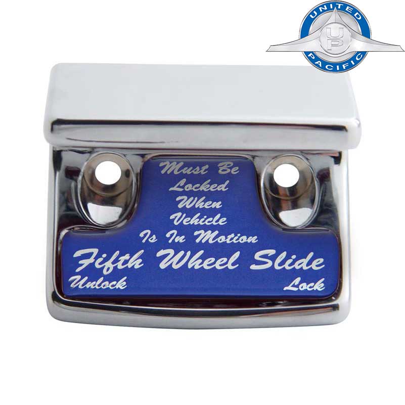 United Pacific - Chrome Plastic Fifth Wheel Switch Guard with Glossy Sticker for Freightliner and International - Six Colors to Choose From - Sold Each - Switch Guard Available Separately 210101 - Switch Guard Sticker Available Separately 210201B - Fits Most Freightliner & International Makes and Models