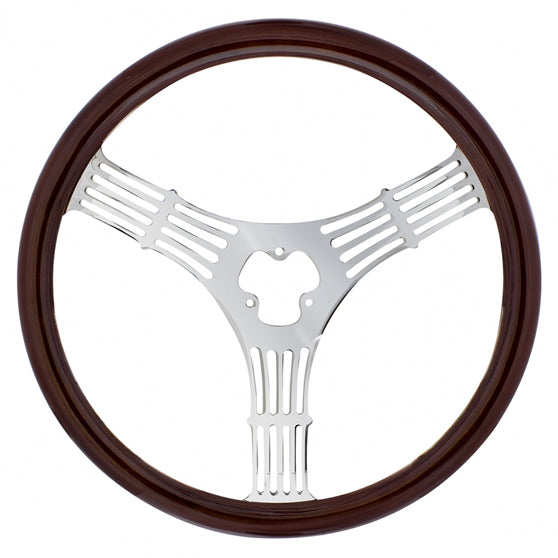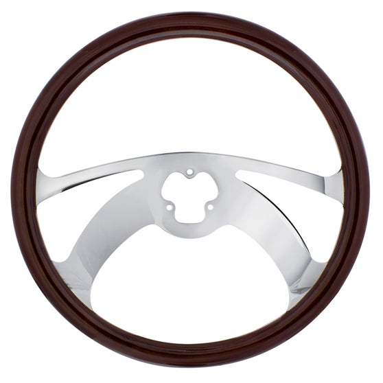 18" 3-Spoke Stamped Steel Steering Wheel With Wood Grip