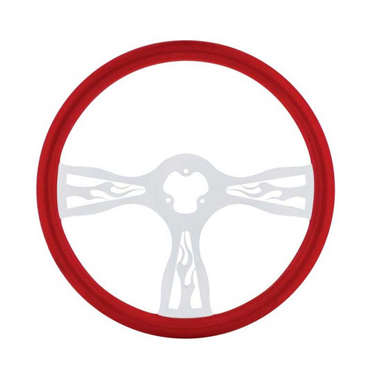 United Pacific - 18 Inch "Flame" Steering Wheel with 4 Chrome Spokes - Available in Blue and Red - Steering Wheel ONLY - Hub Adaptor and Horn Assembly Available Separately - Mix and Match With United Pacific...Regular price $257.99