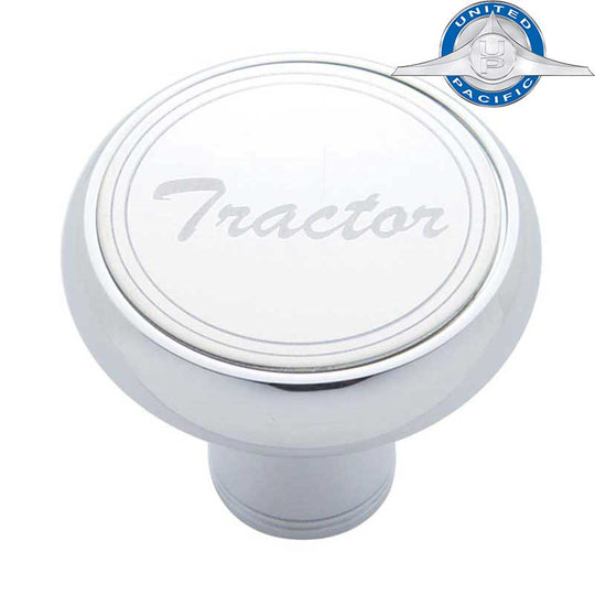 United Pacific - Large Chrome Air Valve Knob with Stainless Steel Plaque in 3 Scripts - Screw Mount Style - Cursive Script in Tractor, Trailer, or Emergency - Sold Each - Fits Most Makes and ModelsRegular price $24.99 -