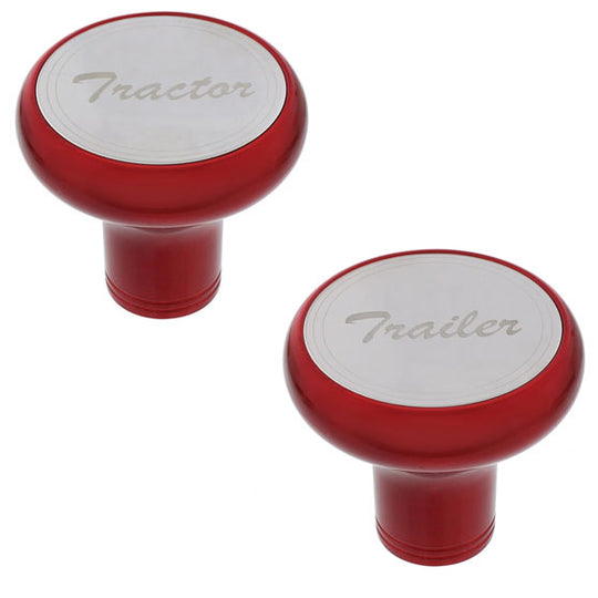 United Pacific - Candy Red Deluxe Screw-On Aluminum Air Valve Knob With Stainless Plaque - Large Screw-On Deluxe Air Valve Knob With Stainless Steel Plaque - Available In Tractor Or Trailer - Sold Each - Fits Most Makes...Regular price $32.95 -