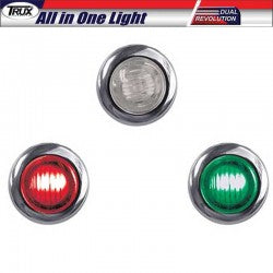 Trux Accessories - Mini Button 2 LED Dual Revolution Red Marker to Auxilary Colored Marker Light - Two Different Colors with Two Different Applications in One Light - Available in: Red to White, Green, Blue, Pink or Purple - Comes with Chrome Bezel - 1 1/2 Inch Diameter x 15/16 Inch Height - 2 LED - Bezel Included - Dual Revolution LED Light Series - Fits Most Makes and Models