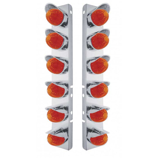 United Pacific - Peterbilt Front Air Cleaner Brackets With 17 LED Watermelon Lights - Made Of Stainless Steel - Amber LEDs With Dark Amber Lens' - Available With Or Without Visor - Not DOT Approved -...Regular price From $249.99