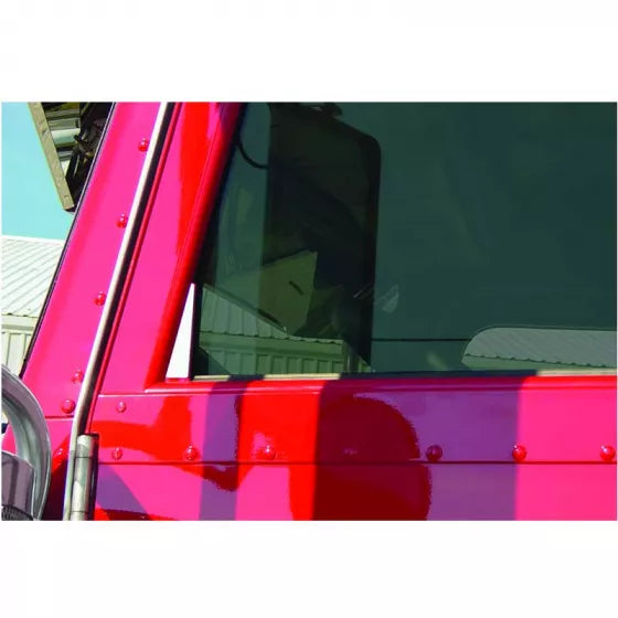 Roadworks - Peterbilt 388 & 389 and Model 379 with Sloped Door - Side Door Trim - Triangular Front Corner Door Window Trims - Stainless Steel - Front Corner Door Window Trim - For Trucks With Sloped Doors - Sold as Pair - Fits (Model): 335, 357, 378, 379 and 385 - Fits (Year): 2006, 2007, 2008, 2009, 2010, 2011, 2012, 2013, 2014, 2015 and 2016