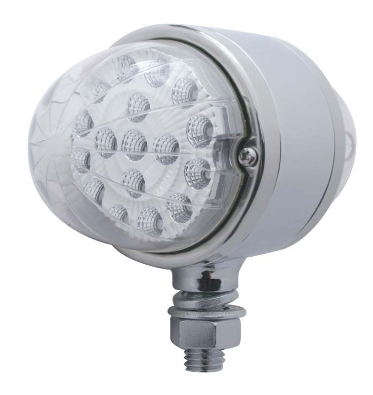 United Pacific - Chrome Double Face Reflector LED Auxiliary Light - 17 Amber LED with Amber Lens, 17 Red LED with Red Lens - Also Available with Clear Lens - Heavy Duty Chrome Housing - Single Stud Mounting - For Auxiliary/Utility Light Application - Dual Function - 3 Wires (Hard Wired) - Sold Each - Fits Most Makes and Models