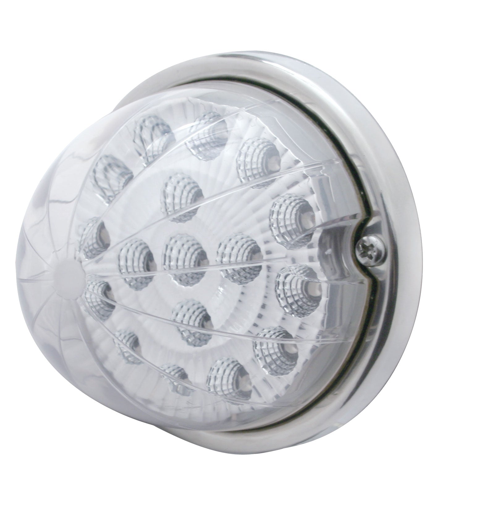 United Pacific - 17 LED Round Reflector Auxiliary/Cab Light Flush Mount Kit - 17 Amber or Red LEDs with Amber, Red, or Clear Lens - Dual Function - Clear Style Lens - Mounting Studs are 1 4/5 Inch Apart - Hard Wired with Three .180 Bullet Plugs - Sold Each - Designed For United Pacific Air Cleaner and Light Brackets - Fits Most Makes and Models