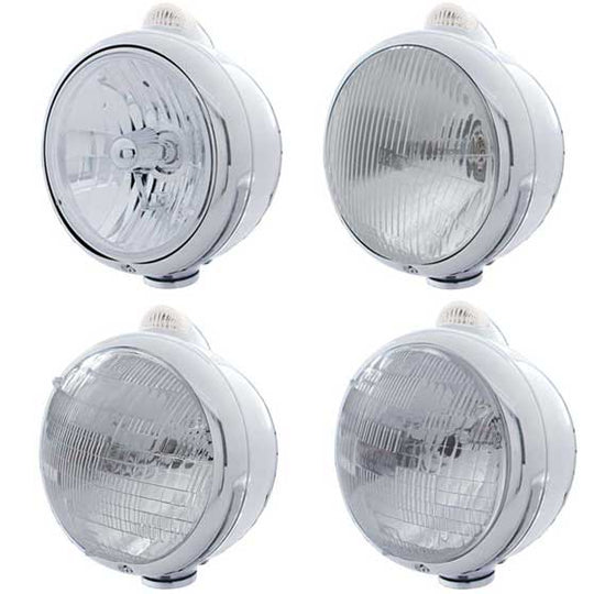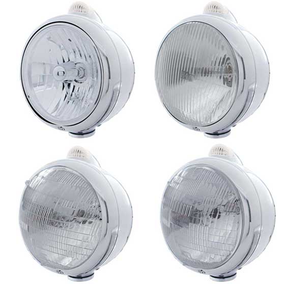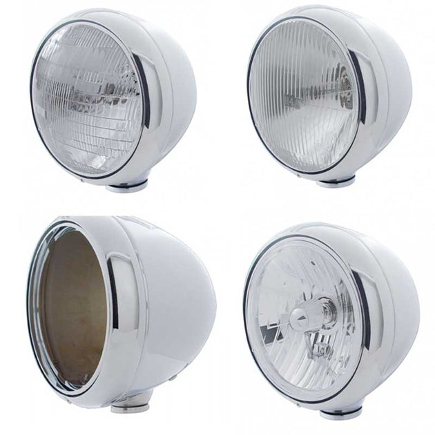 Chrome or Stainless 7 Inch Classic Style Guide Headlight in 10 Options