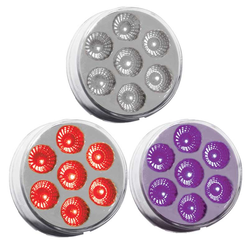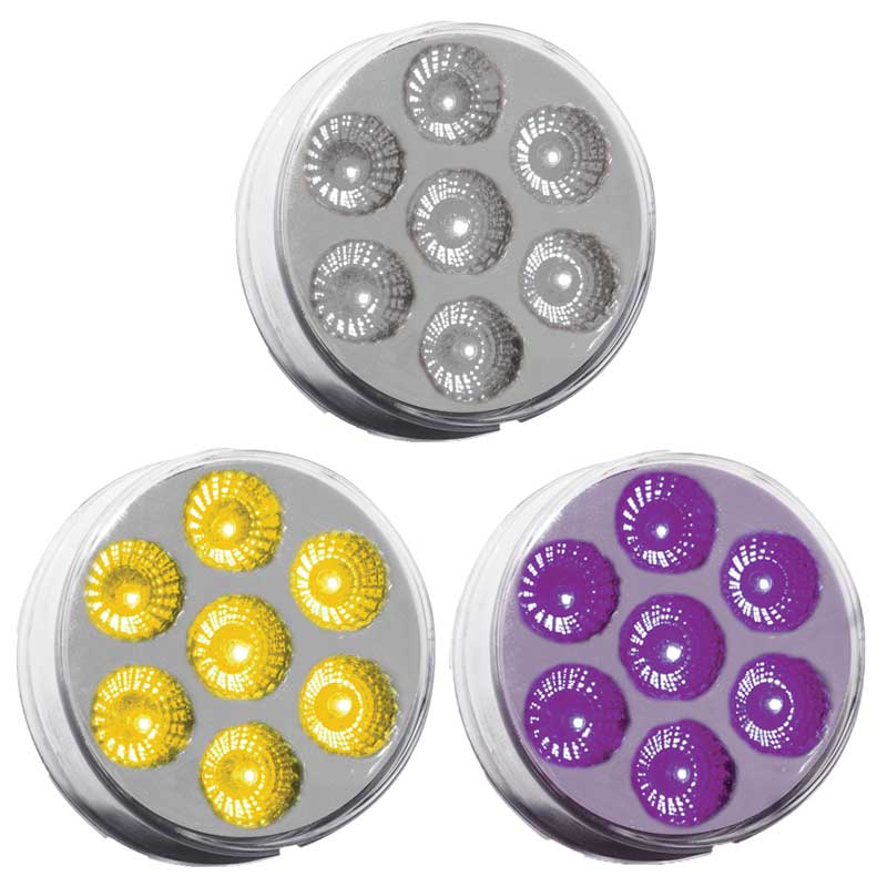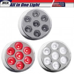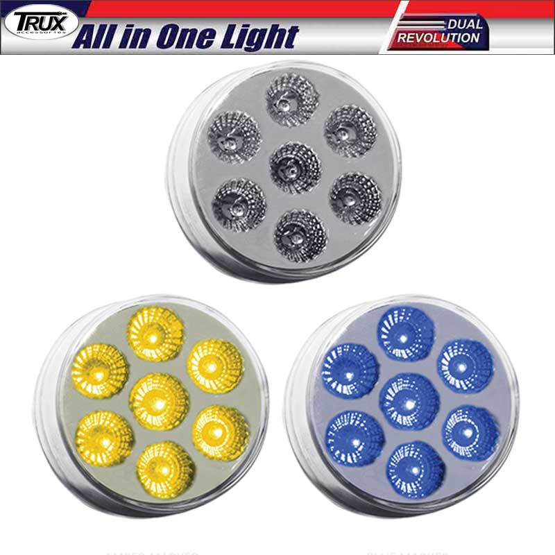 Trux Accessories - 2 Inch 7 LED Dual Revolution in 3 Variations - All in One Light. Fits 2 Inch Standard Grommet. Installs with Standard - 2 Prong Pigtail and Extra Wire with Male Bullet Plug for Blue - Amber OR Red Marker with Blue Marker - Amber OR Red Marker with Purple Marker - Amber OR Red Marker with Green Marker - Amber Marker with Red Marker - Amber Marker with White Marker- 2 Inch Diameter - 7 LEDs - Dual Revolution LED Light Series - Two Different Colors with Two Different Applications in One Light - Fits Most Makes and Models
