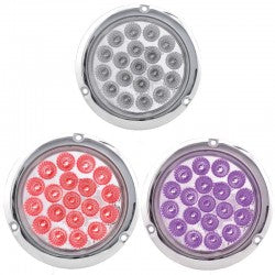 Trux Accessories - 4 Inch Dual Revolution S/T/T 19 LED Flange Mount Light With Red & Blue OR Red & Green OR Red & Purple Functions - 4" Dual Revolution Stop/Turn/Tail Light - Flange Mount - 19 LEDs - Red Stop/Turn/Tail Function - Blue OR Purple OR Green Auxiliary Function - Sold Each - Fits Most Makes And Models