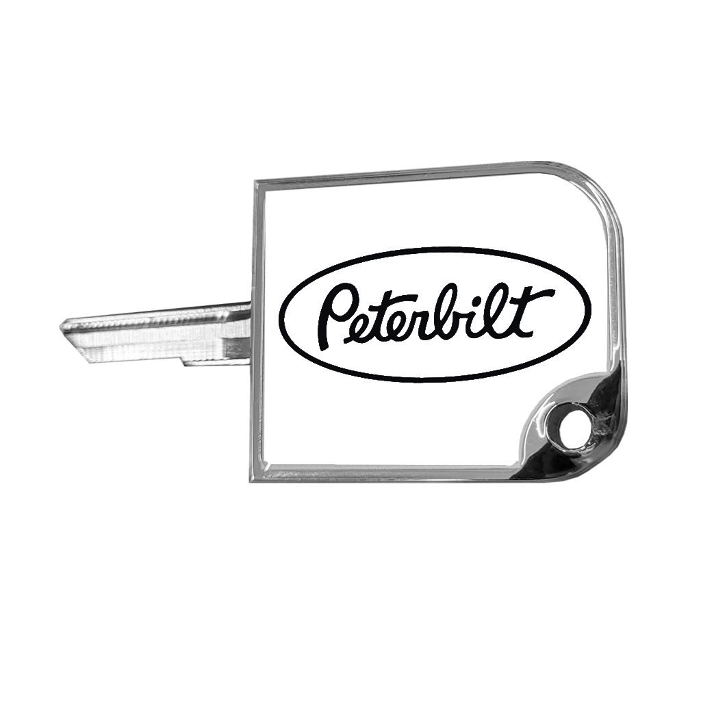 Custom Knobs by Delpann - Peterbilt Billet Aluminum Key Cover - Fits Keys For Peterbilt Trucks - Available In: (Choose Above) Small - 1.75” x 1.5” - Large - 2.25” x 1.75” - Colors Available In: (Choose Above) White - Green - Metallic Blue - Black - USA - Key Ring Hole - Allen Set Screw Included - Sold Individually - Quality North-American Made Product