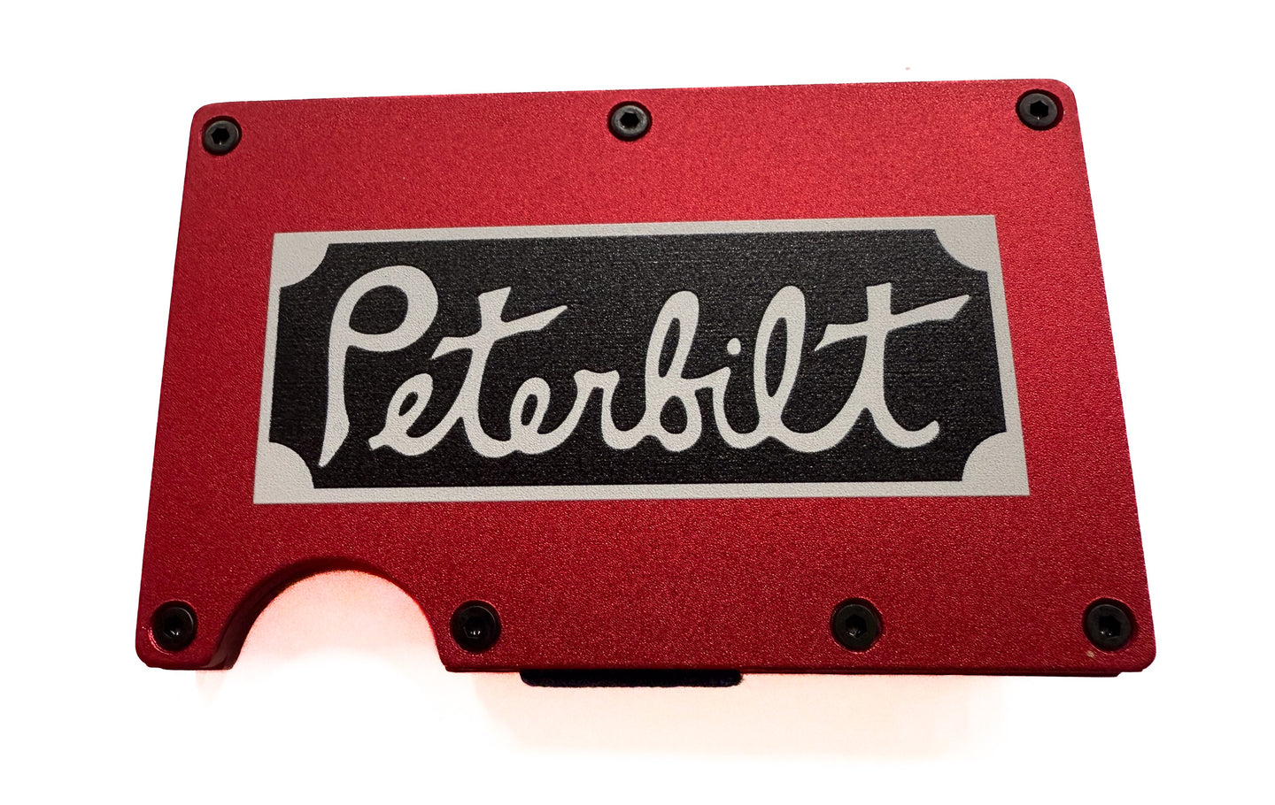 GR - Peterbilt Stainless Steel Alloy Open Card Holders & Money Clip on Back - Available with the old style rectangular emblem or the oval - available in red, blue or red - Has RFID protection